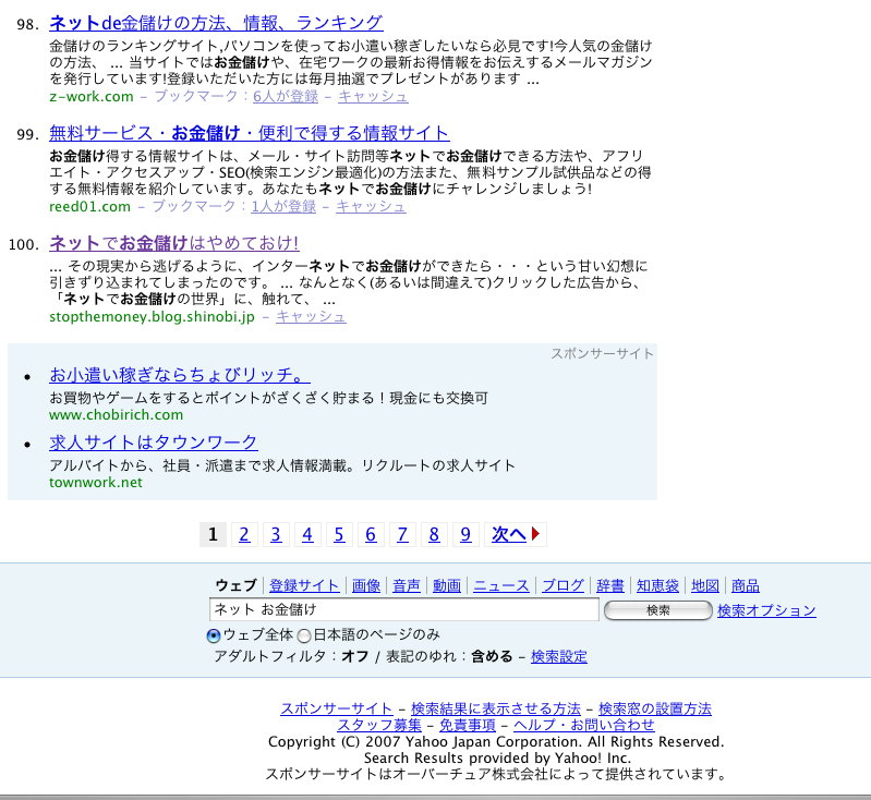 被リンク先は、Yahooの検索窓に