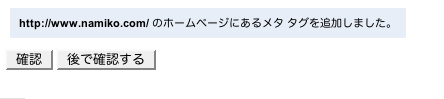 ここからメタタグをサイトのテンプレートの head部分にコピペした後、再びウェブマスターツールの画面から「メタタグを追加しました[確認]」を押して、終わりです。