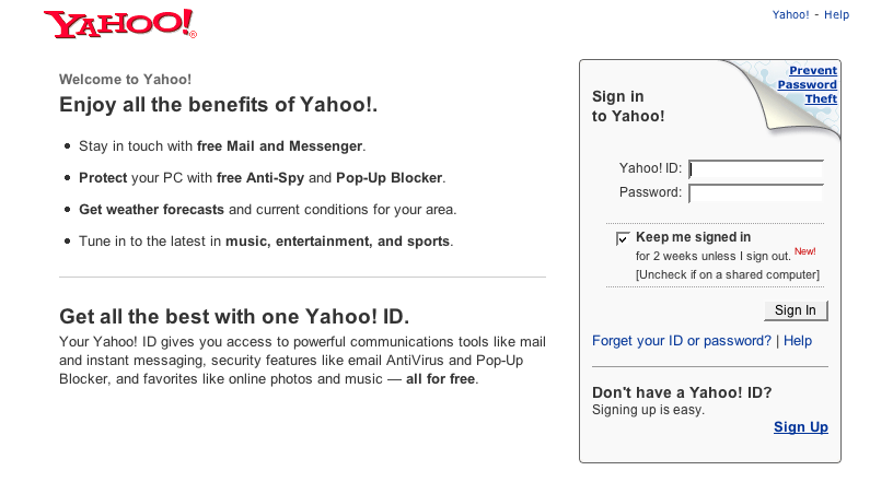 Yahoo JapanのIDは使えません。右下の[Sign Up]から次ぎの登録画面へ。